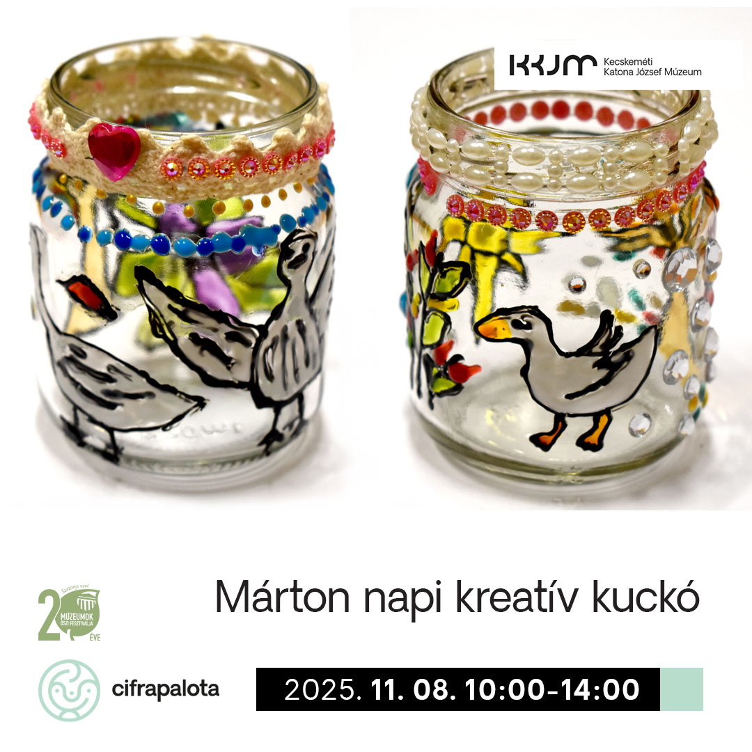 Márton napi kreatív kuckó Időpont: 2025. november 8. szombat 10-14 óráig Helyszín: Cifrapalota, 6000 Kecskemét, Rákóczi út 1. A családi délelőttön a gyerekek versek, dalok, találós kérdések segítségével megismerkednek Szent Márton és a ludak meséjével, a katonából lett püspök életével. Képek alapján keresik a választ arra, hogy: Mi volt a foglalkozása? Melyik volt az első jócselekedete? Minek a hatására döntött úgy, Isten katonája lesz? Hogyan avatták püspökké? Felelevenítik a Márton naphoz fűződő hagyományokat, népszokásokat, babonákat, hiedelmeket, időjóslásokat képek, szólások, mondókák és versek segítségével. A családi program során kreatív alkotótevékenységgel liba figurákat készítenek, papírból, gipszöntéssel. Végül a Gyertek haza ludaim kezdetű népi gyermekjátékkal zárul a program. Ára: 800 Ft/fő (szülőknek is). A program résztvevői ingyenes belépést kapnak a Cifrapalotába. Ezt a programot kisgyermekes családoknak, óvodásoknak, általános iskolásoknak és hozzátartozóiknak ajánlják. Foglalkozást tartja: Merinu Éva +36 20 257 5019 E-mail: cifrapalota.muzped@gmail.com Kapcsolódó képek |