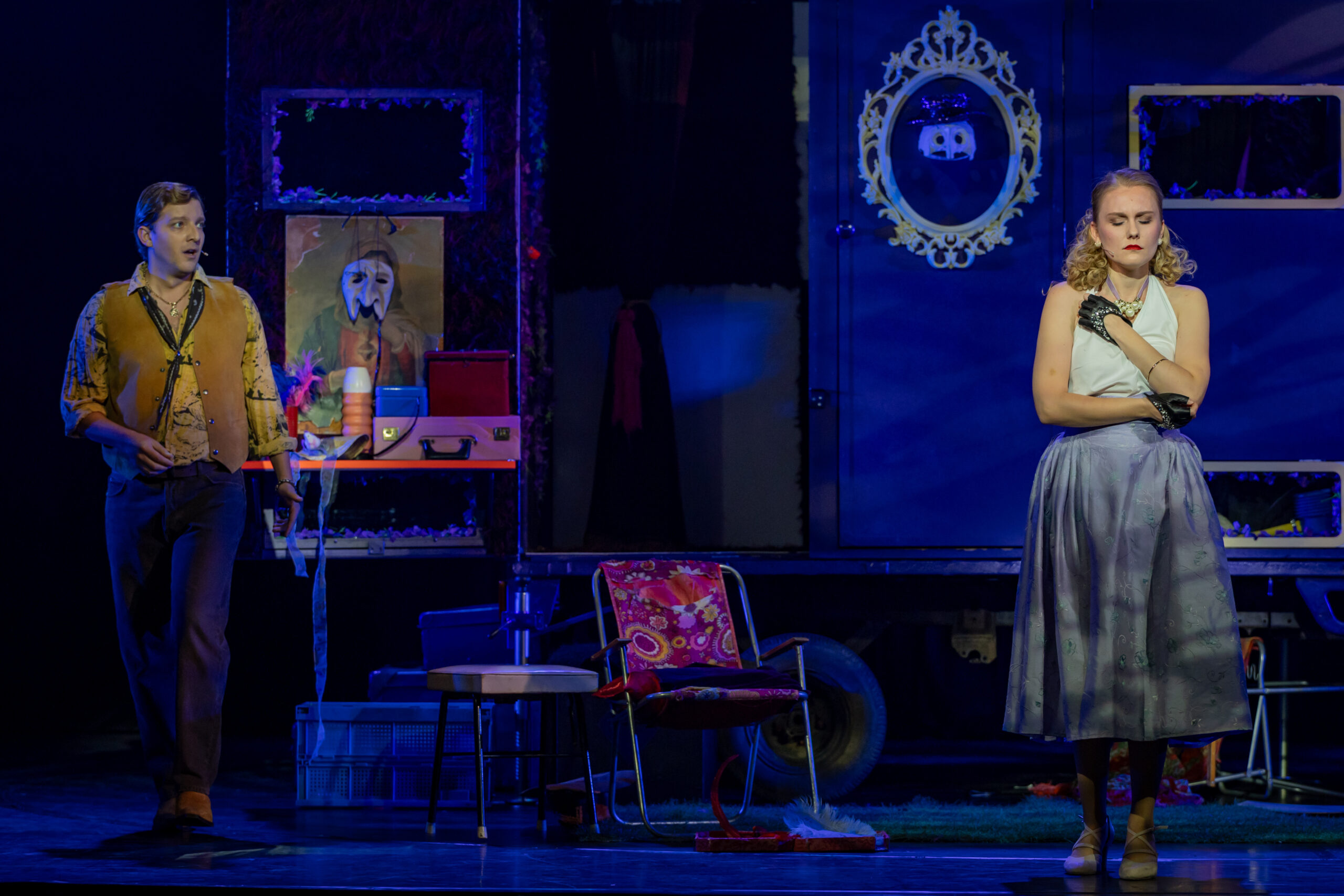 A kecskeméti teátrum történetének eddigi legtöbb szereplőt felvonultató operája, a Bajazzók több szempontból is különleges. Nemcsak a monumentális vállalkozás miatt, hanem azért is, mert ez Szegvári Júlia első rendezése. A fiatal színművész számára az opera világa nem ismeretlen terep – korábban többször is segítette a rendezők munkáját játékmesterként –, de most először ő irányíthatott mindent a színpadi világ megálmodásától a karakterek aprólékos megformálásáig. A Bajazzók egy féltékenység és szerelmi gyilkosság története, mely egy dél-olasz faluba érkező vándorszínész-társulatról szól. Az előadás szövegkönyvét Tóth Kata dramaturggal közösen dolgozták át, hogy közelebb hozzák a nyelvezetét a mai nézőhöz. A librettó frissítése hosszú, aprólékos munka volt. „Károly Katival, a színház zenei vezetőjével, valamint a karmesterekkel – Drucker Péterrel és Iván Sárával – folyamatosan egyeztettünk, hogy minden pontos legyen. A próbákon a korrepetitorok – Madarász Éva Andrea, Lestákné Valasek Szilvia és Faragó Zsófia – voltak segítségünkre” – emelte ki Szegvári Júlia. Az opera különleges hangszerelésben szólal meg: a nagyzenekari partitúrát a kecskeméti teátrum zenekara számára át kellett dolgozni. Ráadásul a darabba új szereplők is kerültek, és ehhez pedig új zenei anyagra volt szükség. Iván Sára elképesztő érzékenységgel írta meg a kiegészítő zenei anyagot, ami szervesen illeszkedik Leoncavallo zenéjéhez – mintha mindig is része lett volna. A látványvilág az előadáson dolgozó vizuális alkotók közös gondolkodásának eredménye. „A munka elején egyetlen nagyon erős képem volt: a színpadon állnia kell egy furgonnak. Ebből az ötletből Molnár Anna díszlettervező egy lenyűgöző cirkuszi furgont varázsolt, és megteremtette azt a különös világot, amelyben az előadás játszódik. A vizuális világ másik meghatározó része Pirityi Emese jelmeztervei: a kórus tagjainak letisztult, mégis egyedi ruhákat, a cirkusz színes, elvont figuráihoz rendkívül karakteres jelmezeket álmodott meg.” Az előadásban egy vándortársulat jelenik meg, ahol együtt élnek és dolgoznak a színészek, cirkuszi figurák és a színpad mögött dolgozó emberek. Itt a különlegesség az, hogy a meghívott gólyalábason és akrobatákon kívül ezeket a szereplőket valóban a színház kellékesei, világosítói és díszítői alakítják – a saját világukat hozzák be a színpadra. Caniót kettős szereposztásban Turpinszky Gippert Béla és Cselóczki Tamás alakítja, Neddaként Híves Boglárka és Kovács Éva lép színpadra. Toniót Bognár Szabolcs és Kristóf István formálja meg. Beppe szerepében Tötös Roland és Serbán Attila, Silvióként pedig Major Attila és Mátyási Áron látható. Ferragostát Laczák Boglárka, a polgármestert Körtvélyessy Zsolt játssza. A Le Figure del Furgone társulat tagjai: Jekkel Anna, Kertész Kata, Kogler Márk, Kovács Ákos, Madi Róbert, Muszonyi József, Rumi László, Szabó Dániel és Varga Attila. További szereplők: Antal Melinda, Balázs Zsófia, Horváth-Gergely Enikő, Mike-Nagy Kitti, Monos M. Franciska, Perjési Anna, Schupp Gabriella, Tfirst Mariann, Kelemen Örs, Bodnár Oreszt, Dabis Dániel, Puskás Gyula, Rigó Márton, Turjányi Mátyás, Turjányi Miklós, Vadkerti-Tóth Martin, Zakar Béla Bence, Horváth-Szabó Áron, Kácsor Noel, Kószó Botond, Németh Natália, Tóth Jázmin és Zubek Benedek. Közreműködik a Kecskeméti Katona József Nemzeti Színház zenekara. A próbafolyamatot Raj Martin játékmester segítette. Egy ókori történet mai kérdésekkel A színház balett-tagozatának táncszínházi produkciójában Spartacus története elevenedett meg. A Kecskemét City Balett művészeinek előadásából egy olyan sors bontakozik ki, ami a ma emberére is megrázó erővel hat. Barta Dóra rendező-koreográfus, a balett-tagozat művészeti vezetője számára az is fontos volt, hogy Spartacus történetét kortalanná tegye, amiben a látványvilág és az elemi erejű zene is a segítségére volt. Az előadás a történelem egyik legmegrendítőbb történetét kelti életre a tánc nyelvén. A cselekmény a Római Birodalom fénykorában játszódik, ahol Spartacust, a szabad trák harcost balsorsa a gladiátor rabszolgák kíméletlen világába sodorja. Az arénák zúgó tapsvihara mögött elhallgattathatatlanul ott morajlik a kiszolgáltatottak láncainak csörgése és Spartacus szívében minden nappal egyre erősebb lesz a vágy az igazság és a szabadság iránt. A téma kiválasztása nem pusztán dramaturgiai döntés volt, hanem belső hívást is jelentett Barta Dóra számára. A balett-tagozat művészeti vezetője szerint Spartacus történetének bemutatása számos kiváló lehetőséget rejt magában. „A Spartacusnak ez a fajta nagyméretű, látványos kiállítású megvalósítása, mind a balettirodalom, mind a filmművészet számára kimagasló feladat, s olyan izgalmas vállalkozás, amelybe mindenképpen érdemes belevágni. Ez az évad kiemelkedően alkalmas rá, hiszen kiválóbbnál kiválóbb férfi táncosok gazdagítják az együttesünket, és fontos cél volt számomra, hogy ez jó lehetőség nekik a megmutatkozásra csapatban és egyénileg egyaránt” – emelte ki Barta Dóra. A Spartacus azonban nem csupán a férfi táncosok köré épül. A rendező-koreográfus számára lényeges volt, hogy a társulat minden tagja méltó teret kapjon. „A Spartacusban számtalan különleges alakításra alkalmas szerep van. Az összes szereplő egytől egyig megtalálhatja az előadásban a maga egyedi pillanatát, amiben megmutathatja az erejét és lendületét.” A Spartacus zenéje sokak számára egyet jelent Hacsaturján grandiózus kompozíciójával, Barta Dóra 
