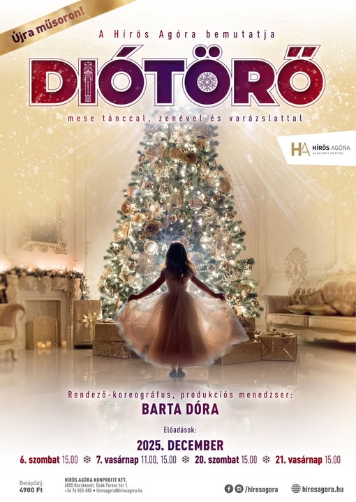DIÓTÖRŐ, újra műsoron a Hírös Agóra Kulturális Központban Az idei évben is elbűvöl minket ez a mesebeli előadás, ahol a tánc, zene és varázslat kéz a kézben jár!