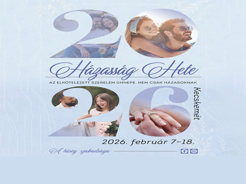 HÁZASSÁG HETE A KECSKEMÉTI HÍRÖS AGÓRÁBAN 2026. február 7 – 18. február 7 – 28. között február 9. hétfő 17.00 február 12. csütörtök 17.00 február 12. csütörtök 18.00 február 12. csütörtök 19.00 február 13. péntek 18.00 február 13. péntek 19.00 február 14. szombat 14.00-17.00 február 14. szombat 18.00 február 15. vasárnap 19.00 február 15. vasárnap 18.00 Forrás: Hírös Agóra Kulturális és Ifjúsági Központ Nonprofit Kft. Kapcsolódó képek |