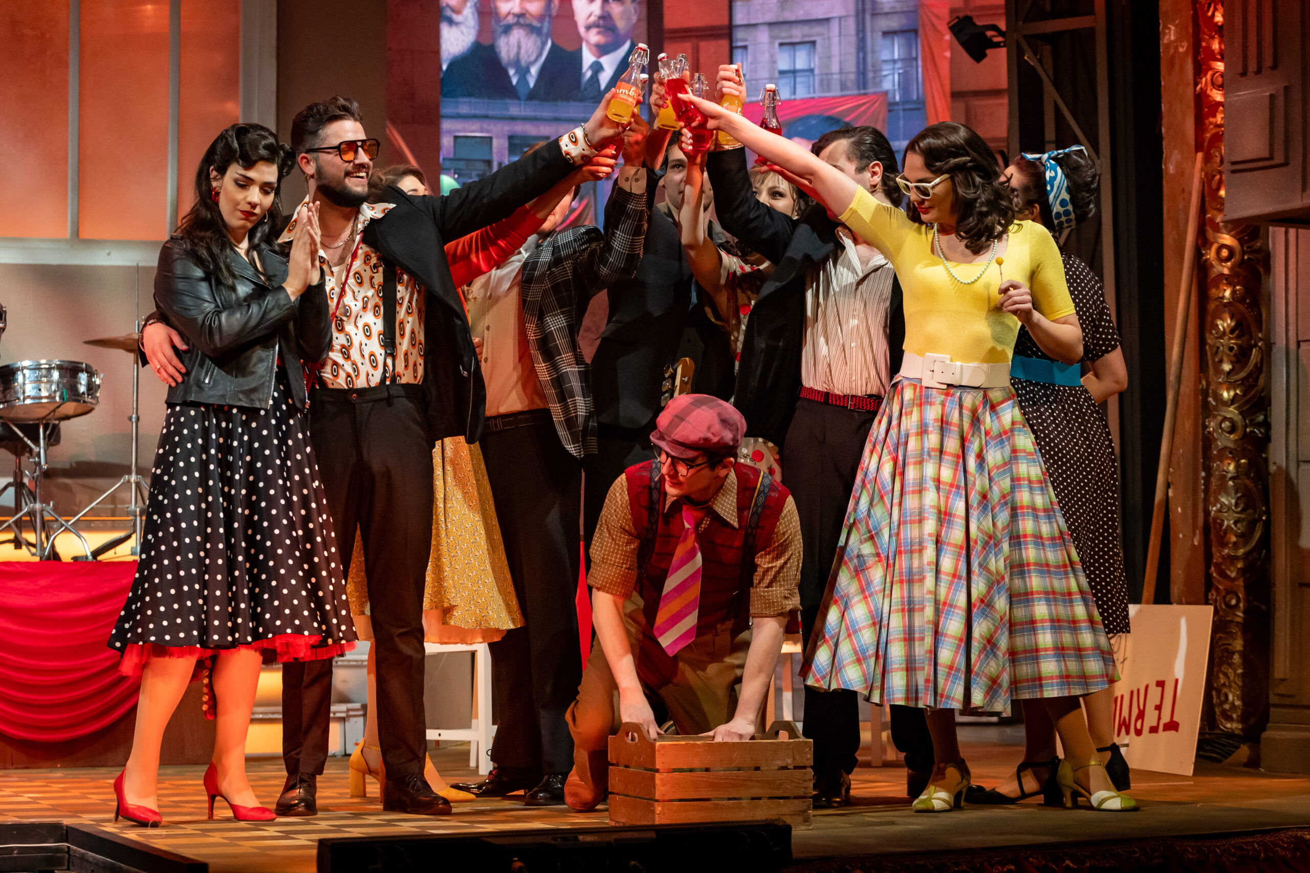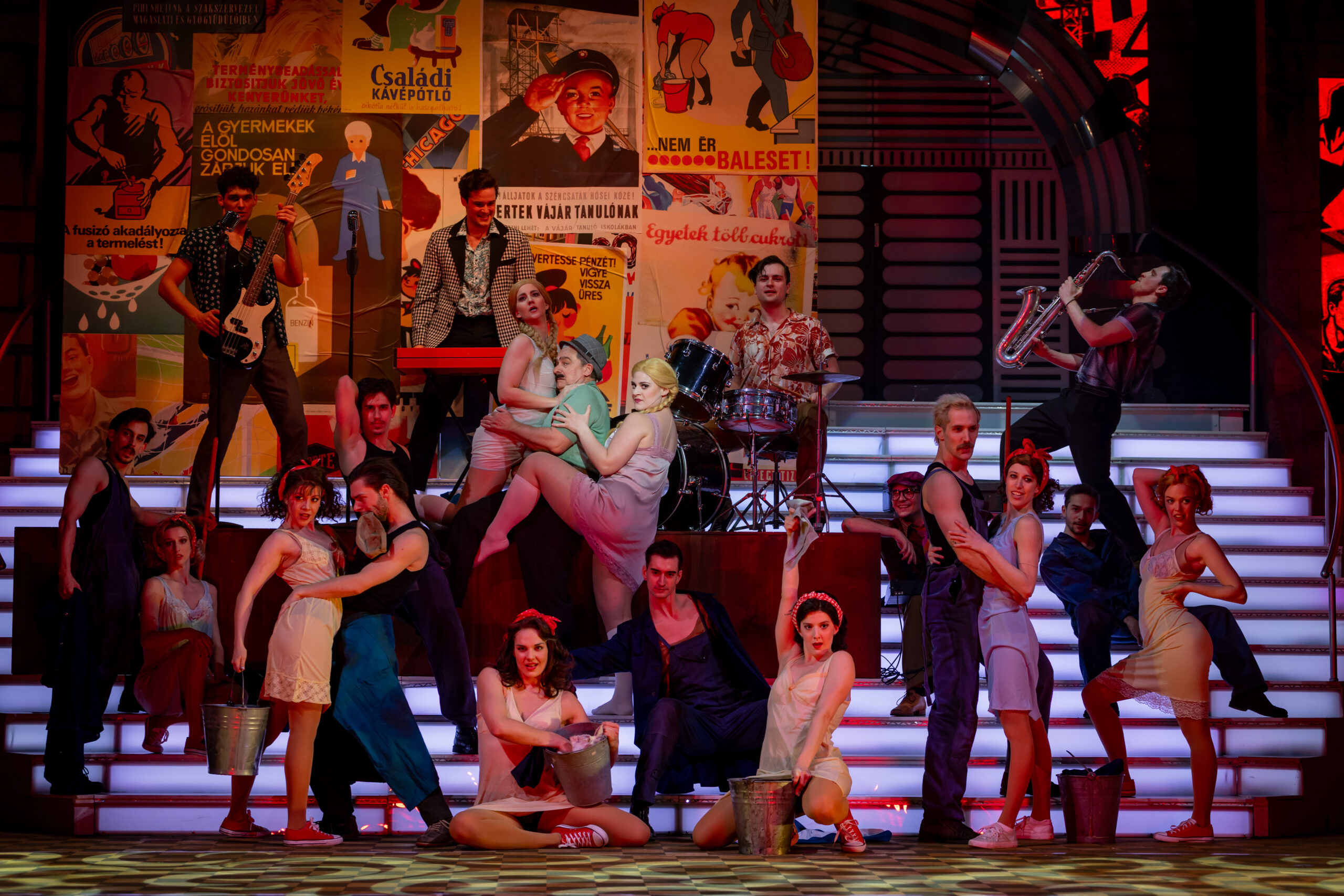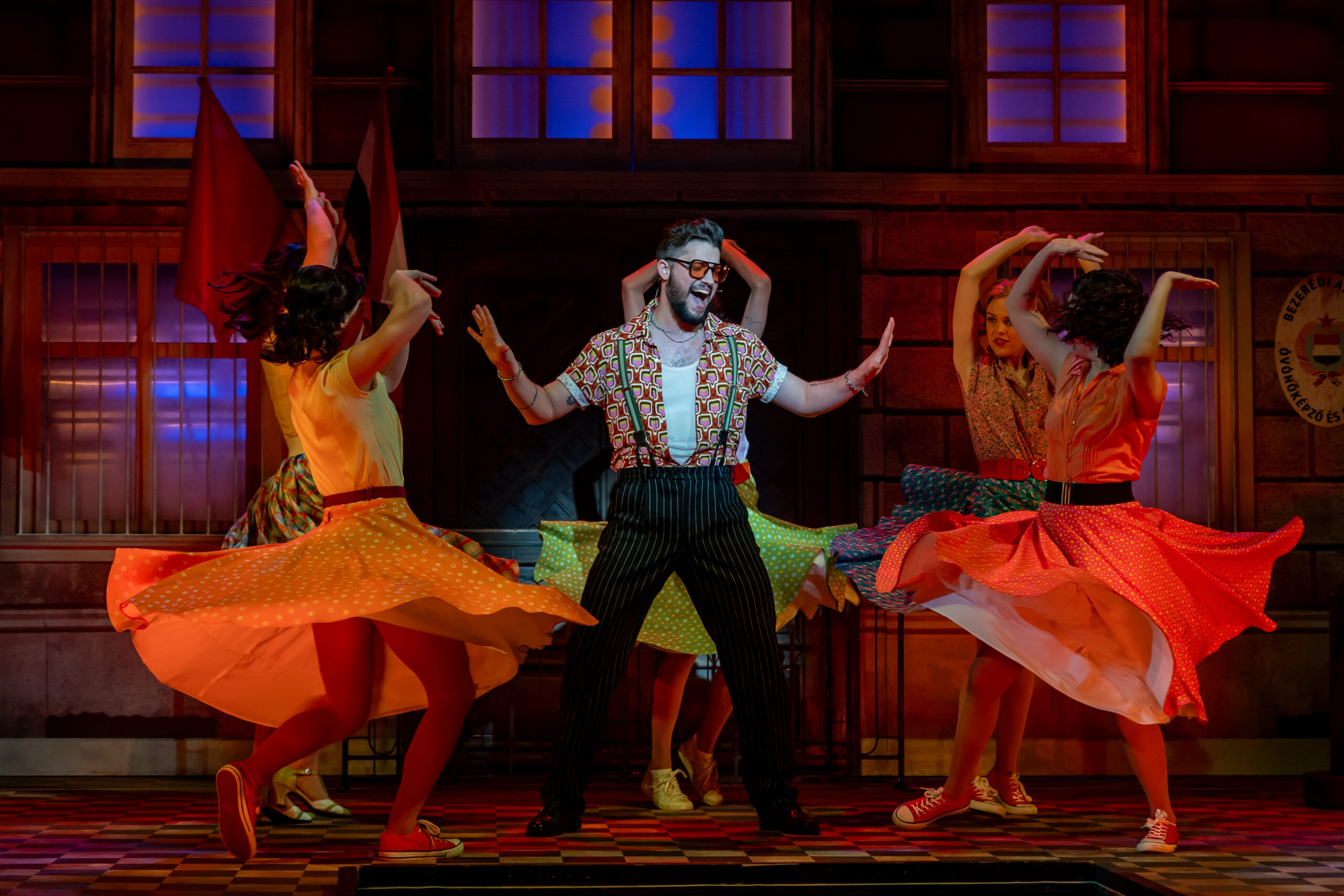 Most először érkezett meg a kecskeméti közönség elé Fenyő Miklós, Tasnádi István és Novai Gábor több mint két évtizede töretlen sikerrel játszott darabja, a Made in Hungária. A zenés házibuli a hatvanas évek vibráló világát, a rock and roll felszabadító erejét és egy generáció szabadságvágyát idézi meg – mindezt látványos, lendületes formában. A kecskeméti előadás különlegessége, hogy a darab történetében először élő zenekari kísérettel szólalnak meg a jól ismert slágerek, új dimenziót adva a produkciónak. A zenét a színház zenekara kelti életre Iván Sára hangszerelésében, a zenei vezető Károly Kati volt, míg a karmesteri pálcán Iván Sára és Drucker Péter osztozik. A produkció egyben tisztelgés is a nemrég elhunyt Fenyő Miklós előtt: a darab az ő életének egy meghatározó szakaszát dolgozza fel, és az alkotók célja, hogy méltó emléket állítsanak a legendás előadóművész életművének. „1967-68-ban járunk. Egy félelmetes világ volt, ami fölött ott feszült a nagy, vörös lepel, de közben már ott kukucskált valahol a szabadság vágya is. A szocialista rendszer groteszk és zárt világa néha kellő humorral ugyan, de mégiscsak ott húzódik ebben a darabban. Ezzel áll szemben a zene, ami megfogalmazza a falon való áttörés vágyát. Ricky Amerikából csöppen vissza ebbe a hazugságokkal teli közegbe, amivel nem tud megbékélni. Ez a történet Fenyő Miklós életének egy szakaszát mutatja meg. Elképesztő energia munkált benne, zenélni akart, és a dalain keresztül akarta megfogalmazni a társadalomkritikáját és a vágyait” – mondja Juronics Tamás. A rendező személyes élményeiből is táplálkozva álmodta színpadra a produkciót, ugyanis már gyerekkorában kívülről fújta a Hungária slágereit. A kecskeméti bemutató különleges szakmai együttműködés eredménye is: Rickyt, illetve az Angel Land zenekar tagjait a Színház- és Filmművészeti Egyetem hallgatói alakítják. Juronics Tamás szerint az ő világmegváltó vágyuk és autentikus energiájuk nélkülözhetetlen ahhoz, hogy megmutassák: a fiatalság minden korszakban hordozza magában a lázadás erejét. A produkció grandiózus, sok helyszínt megjelenítő látványvilágát Kovács Yvette Alida díszletei és Velich Rita jelmezei határozzák meg, amelyek a revük csillogását ötvözik a korszak hangulatával. A színpadképet élővé tevő fényeket és animációt Madarász (Madár) János tervezte. A színpadon mindenki, mindig mozgásban van – a lenyűgöző koreográfiát Túri Lajos Péter és Raj Martin jegyzik. A dramaturg Tóth Kata volt. Ricky szerepében Garamvári Ádám, Jerry Lee Lewisként Koltai-Nagy Balázs, Röné szerepében Mechle Christian, Veraként Kovács Panka, Marinaként Bori Réka látható, míg Csiput Varga Szabolcs, Tripoliszt Lajcsik Domonkos, Rudit Horváth Gábriel, Kis Nyírőt pedig Veress György Levente alakítja. Bigali elvtársat Hegedűs Zoltán formálja meg, Ricky anyját Danyi Judit, apját Ferencz Bálint játssza. A két egymással zsörtölődő házmester szerepében Körtvélyessy Zsolt és Sirkó László látható. Hella szerepében Szegvári Júlia, Gretchenként Monos M. Franciska, Duci Juciként Balázs Zsófia, Samponként Varga-Huszti Máté, Turbina tizedesként Pál Attila, Sípos őrmesterként Cselóczki Tamás, műsorvezetőként Schupp Gabriella, Bizsu szerepében pedig Varga Lotti lép színpadra. A produkcióban közreműködik a színház teljes énekkara, tánctagozata és zenekara is. A Made in Hungária több mint egy zenés előadás: közös ünnep, ahol múlt és jelen találkozik, és ahol a rock and roll örök lendülete generációkat köt össze. A színház az előadást Fenyő Miklós, Novai Gábor és Tasnádi István hozzájárulásával mutatta be. Forrás: Kecskeméti Katona József Nemzeti Színház