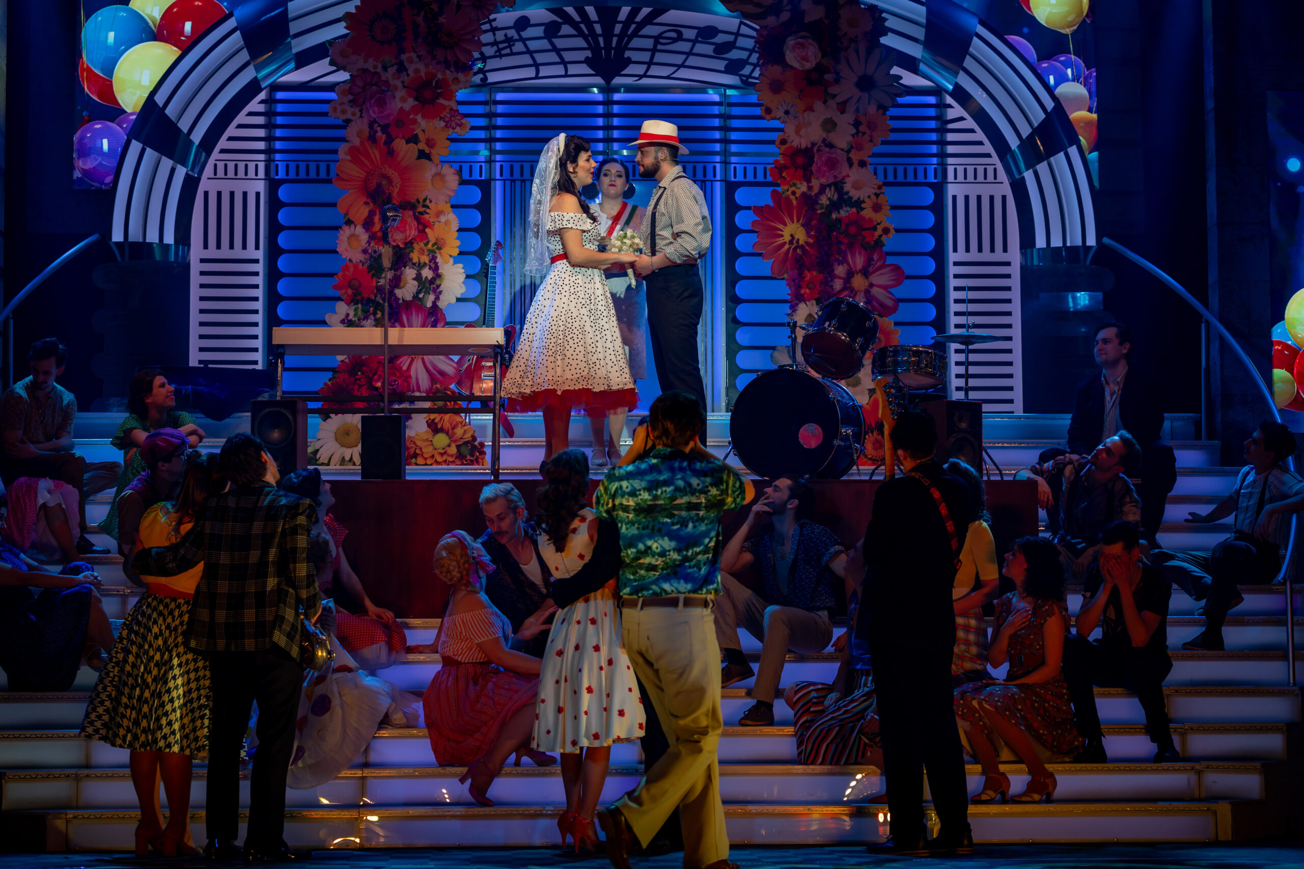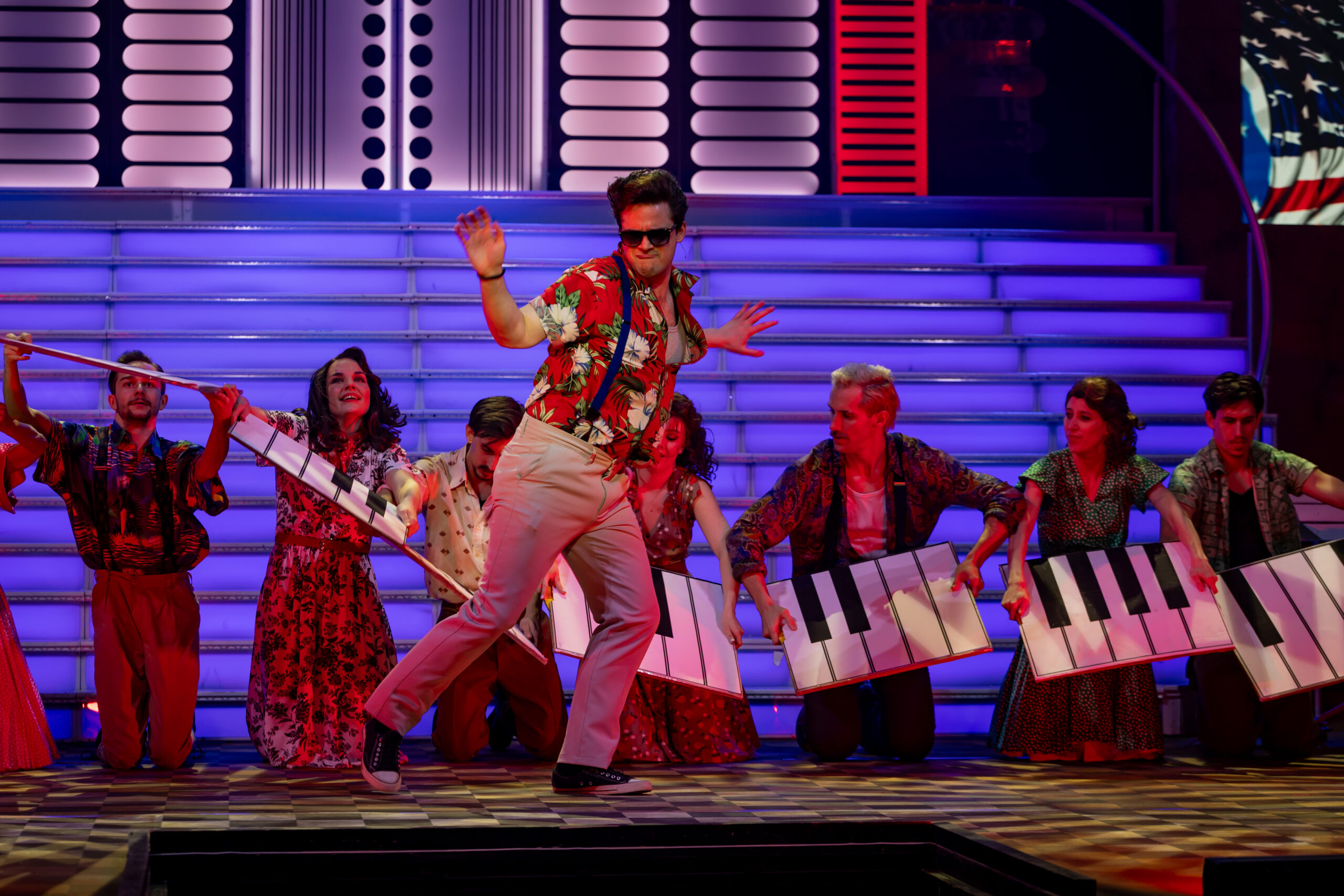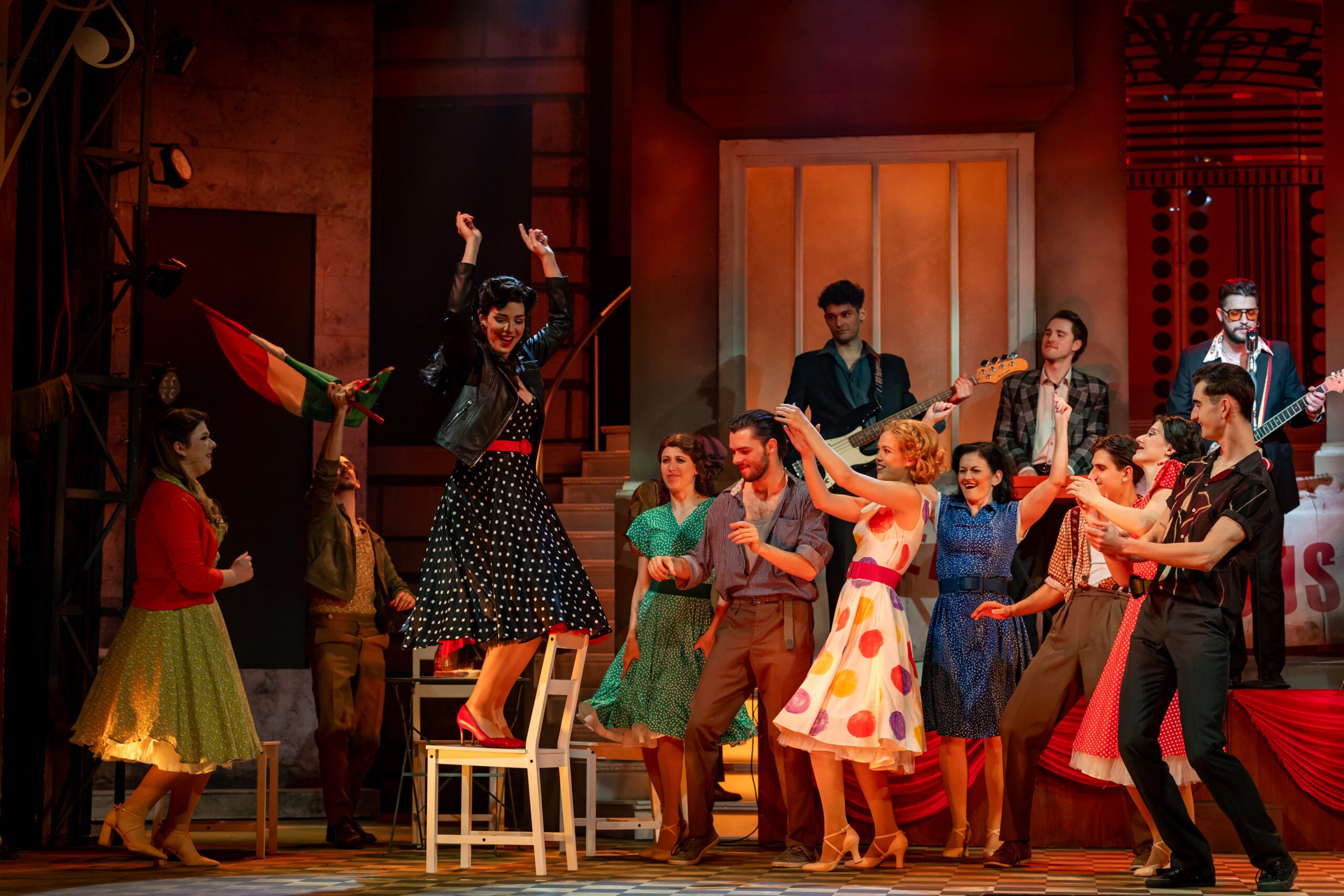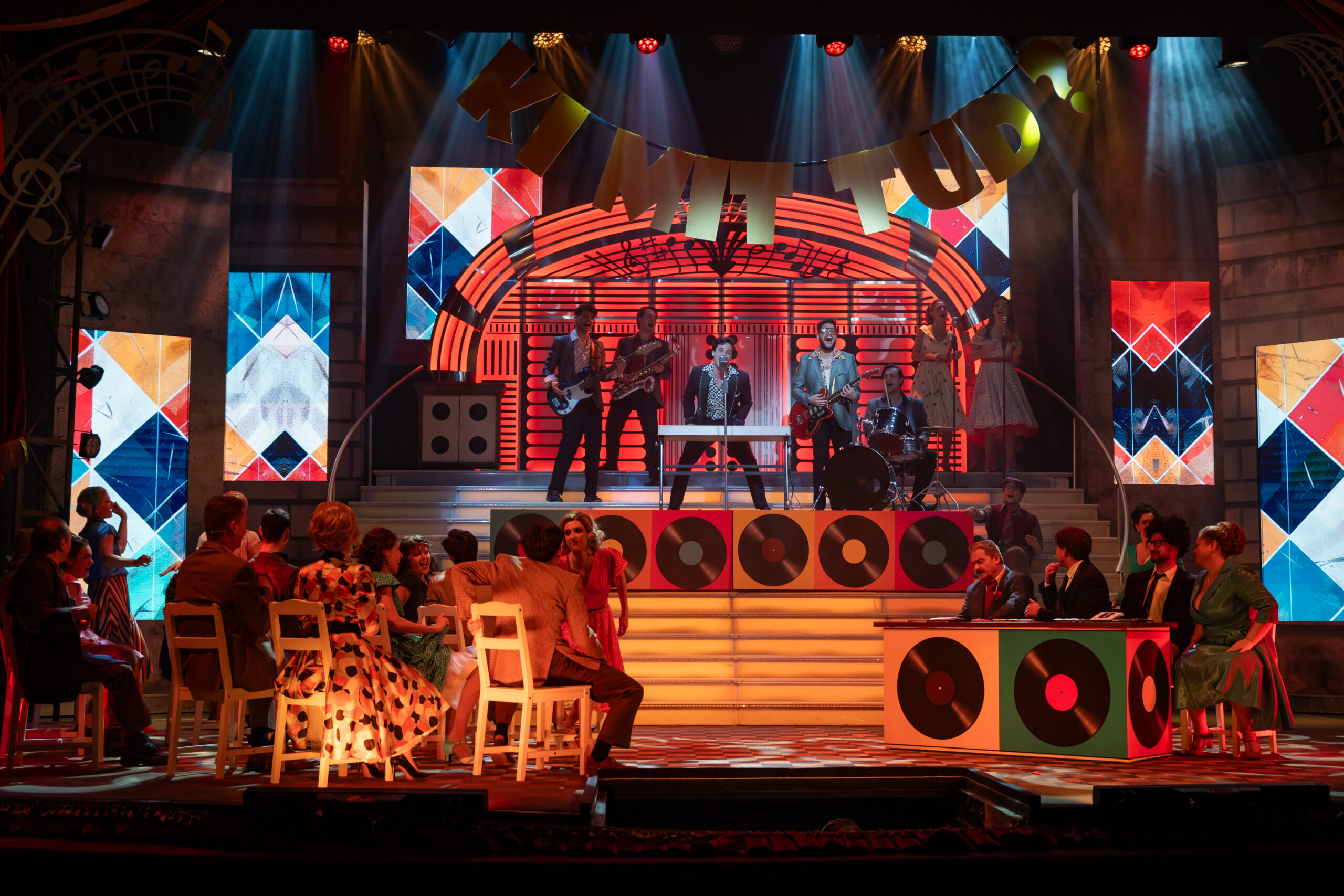 Most először érkezett meg a kecskeméti közönség elé Fenyő Miklós, Tasnádi István és Novai Gábor több mint két évtizede töretlen sikerrel játszott darabja, a Made in Hungária. A zenés házibuli a hatvanas évek vibráló világát, a rock and roll felszabadító erejét és egy generáció szabadságvágyát idézi meg – mindezt látványos, lendületes formában. A kecskeméti előadás különlegessége, hogy a darab történetében először élő zenekari kísérettel szólalnak meg a jól ismert slágerek, új dimenziót adva a produkciónak. A zenét a színház zenekara kelti életre Iván Sára hangszerelésében, a zenei vezető Károly Kati volt, míg a karmesteri pálcán Iván Sára és Drucker Péter osztozik. A produkció egyben tisztelgés is a nemrég elhunyt Fenyő Miklós előtt: a darab az ő életének egy meghatározó szakaszát dolgozza fel, és az alkotók célja, hogy méltó emléket állítsanak a legendás előadóművész életművének. „1967-68-ban járunk. Egy félelmetes világ volt, ami fölött ott feszült a nagy, vörös lepel, de közben már ott kukucskált valahol a szabadság vágya is. A szocialista rendszer groteszk és zárt világa néha kellő humorral ugyan, de mégiscsak ott húzódik ebben a darabban. Ezzel áll szemben a zene, ami megfogalmazza a falon való áttörés vágyát. Ricky Amerikából csöppen vissza ebbe a hazugságokkal teli közegbe, amivel nem tud megbékélni. Ez a történet Fenyő Miklós életének egy szakaszát mutatja meg. Elképesztő energia munkált benne, zenélni akart, és a dalain keresztül akarta megfogalmazni a társadalomkritikáját és a vágyait” – mondja Juronics Tamás. A rendező személyes élményeiből is táplálkozva álmodta színpadra a produkciót, ugyanis már gyerekkorában kívülről fújta a Hungária slágereit. A kecskeméti bemutató különleges szakmai együttműködés eredménye is: Rickyt, illetve az Angel Land zenekar tagjait a Színház- és Filmművészeti Egyetem hallgatói alakítják. Juronics Tamás szerint az ő világmegváltó vágyuk és autentikus energiájuk nélkülözhetetlen ahhoz, hogy megmutassák: a fiatalság minden korszakban hordozza magában a lázadás erejét. A produkció grandiózus, sok helyszínt megjelenítő látványvilágát Kovács Yvette Alida díszletei és Velich Rita jelmezei határozzák meg, amelyek a revük csillogását ötvözik a korszak hangulatával. A színpadképet élővé tevő fényeket és animációt Madarász (Madár) János tervezte. A színpadon mindenki, mindig mozgásban van – a lenyűgöző koreográfiát Túri Lajos Péter és Raj Martin jegyzik. A dramaturg Tóth Kata volt. Ricky szerepében Garamvári Ádám, Jerry Lee Lewisként Koltai-Nagy Balázs, Röné szerepében Mechle Christian, Veraként Kovács Panka, Marinaként Bori Réka látható, míg Csiput Varga Szabolcs, Tripoliszt Lajcsik Domonkos, Rudit Horváth Gábriel, Kis Nyírőt pedig Veress György Levente alakítja. Bigali elvtársat Hegedűs Zoltán formálja meg, Ricky anyját Danyi Judit, apját Ferencz Bálint játssza. A két egymással zsörtölődő házmester szerepében Körtvélyessy Zsolt és Sirkó László látható. Hella szerepében Szegvári Júlia, Gretchenként Monos M. Franciska, Duci Juciként Balázs Zsófia, Samponként Varga-Huszti Máté, Turbina tizedesként Pál Attila, Sípos őrmesterként Cselóczki Tamás, műsorvezetőként Schupp Gabriella, Bizsu szerepében pedig Varga Lotti lép színpadra. A produkcióban közreműködik a színház teljes énekkara, tánctagozata és zenekara is. A Made in Hungária több mint egy zenés előadás: közös ünnep, ahol múlt és jelen találkozik, és ahol a rock and roll örök lendülete generációkat köt össze. A színház az előadást Fenyő Miklós, Novai Gábor és Tasnádi István hozzájárulásával mutatta be. Forrás: Kecskeméti Katona József Nemzeti Színház